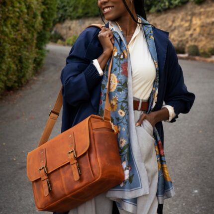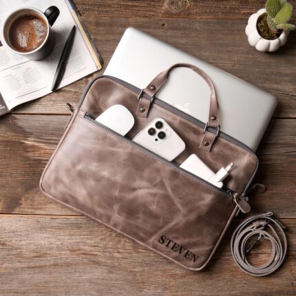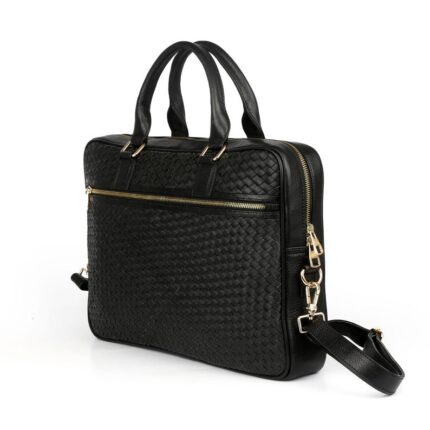 Handmade Woven Leather Laptop Bag: 16 inch Padded Briefcase