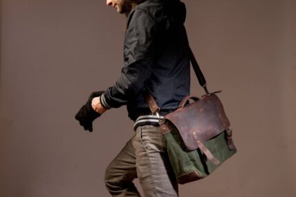 Luxury Men’s Green Full-Grain Leather Work Briefcase | 14–15.6″ Laptop Compatible | Stylish Office & Travel Bag with Trolley Sleeve