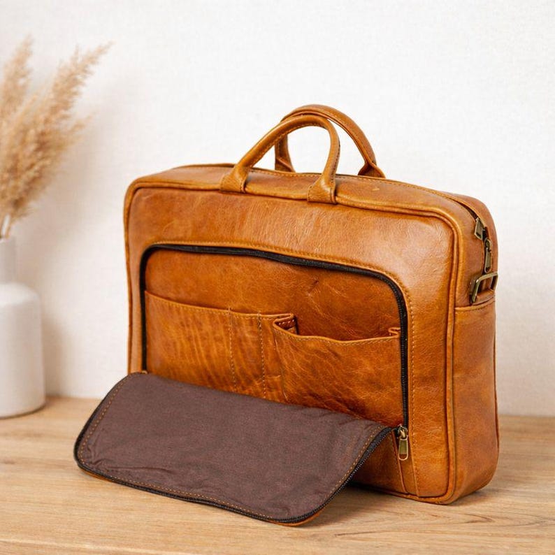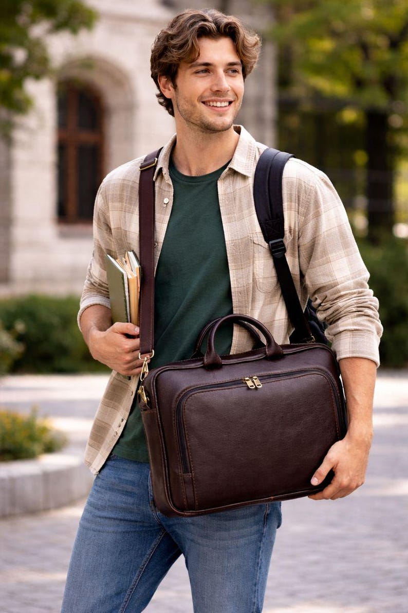 This 15-inch leather laptop briefcase combines professional style with everyday functionality. Smartly designed for work, campus, and travel, it keeps your devices protected while maintaining a clean, timeless look.