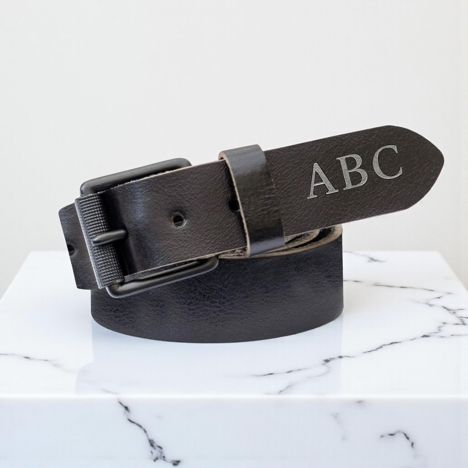 This black full grain buffalo leather belt is handmade for strength, style, and longevity. Personalised with initials or a message, it makes the perfect gift for your husband, dad, son, or boyfriend — ideal for birthdays, everyday wear, or 3rd anniversaries.