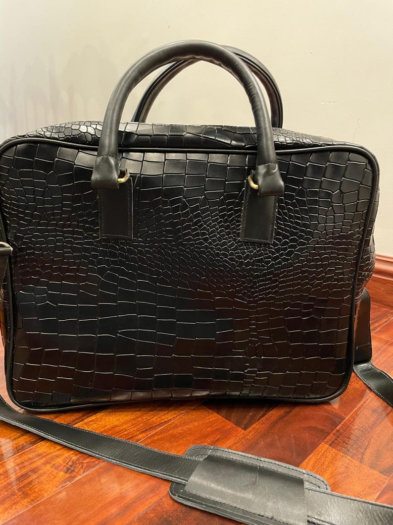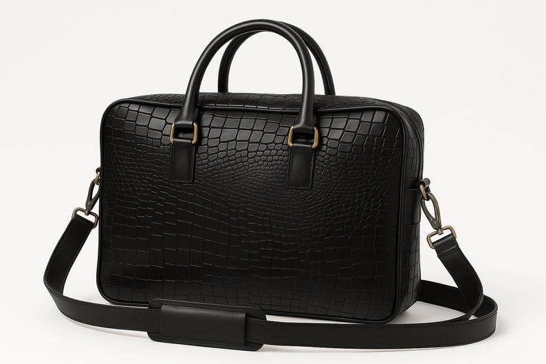 Be the first to review “Black Crocodile-Embossed Leather Laptop Bag: Sleek Briefcase” Cancel reply