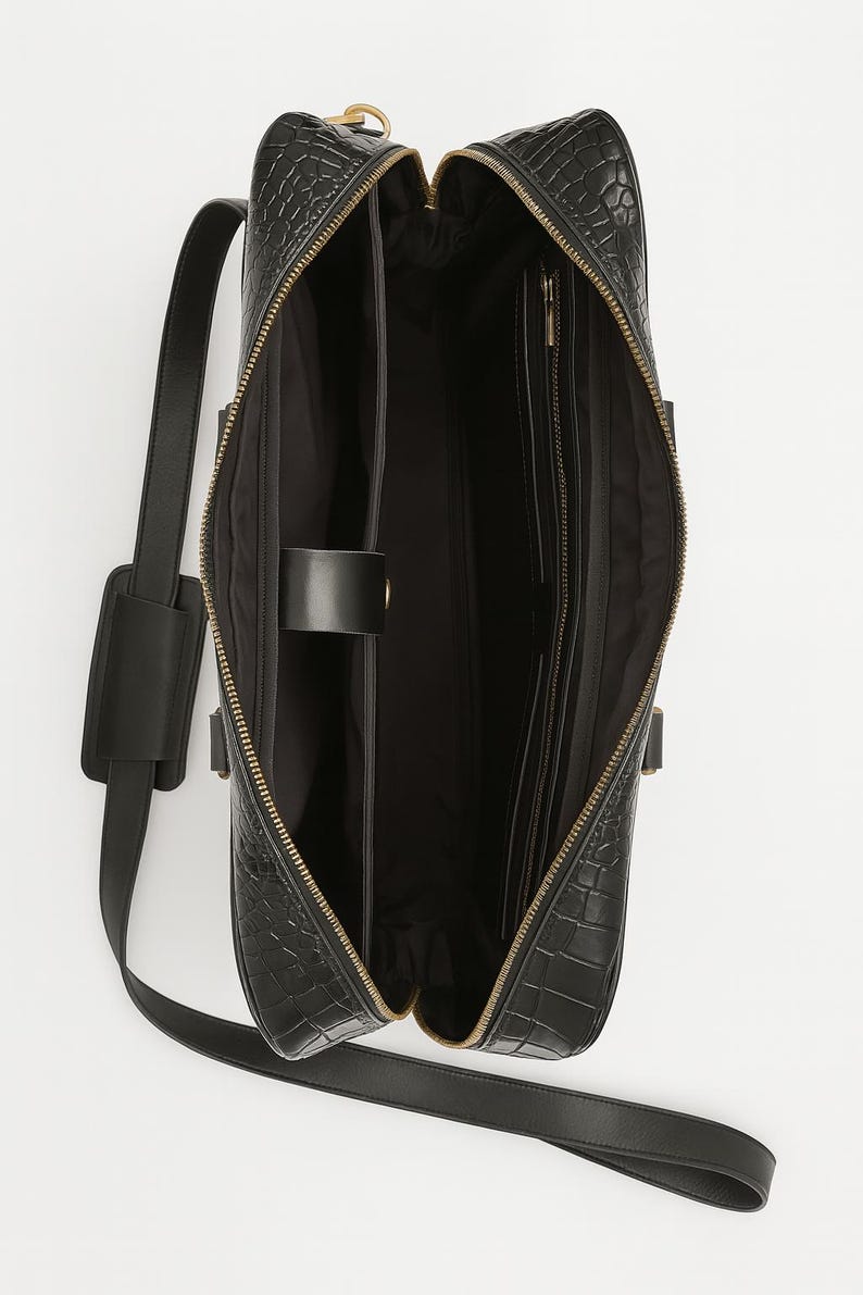 Indulge in sophistication with this exquisite black crocodile-embossed leather laptop bag. Perfectly sleek and stylish, this briefcase is designed for both men and women who appreciate luxury. Elevate your professional look with this statement accessory that exudes refinement.