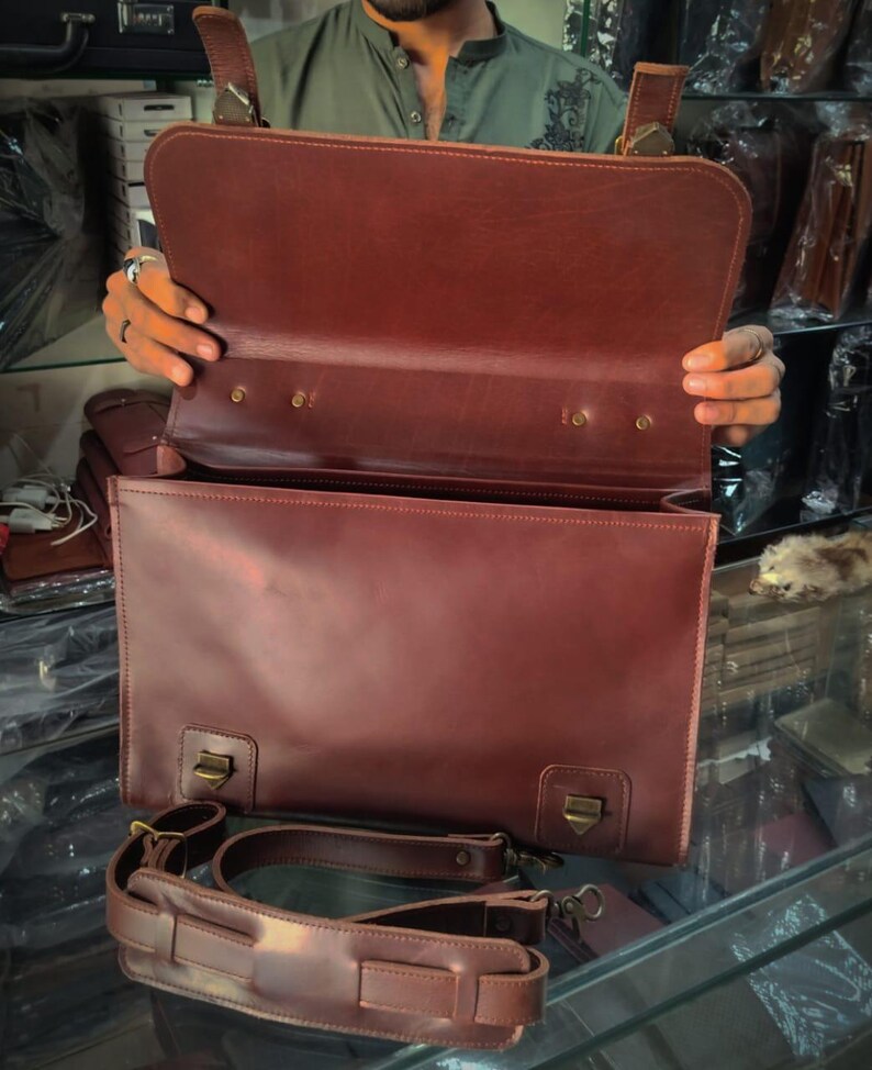 Step out in sophistication with our elegantly designed cow leather messenger bag. Crafted for durability and style, this versatile satchel is perfect for daily commutes, professional settings, or simply elevating your everyday look. Experience the lasting quality and rich texture of genuine cow leather.