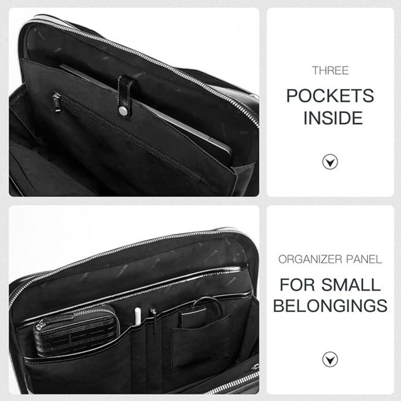 【Made of Full Grain Leather Our leather briefcase is handmade from Full Grain Leather, which is durable high quality cow leather. The full grain leather is rich in character, and the surface is natural.