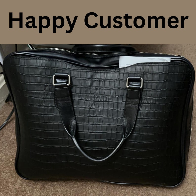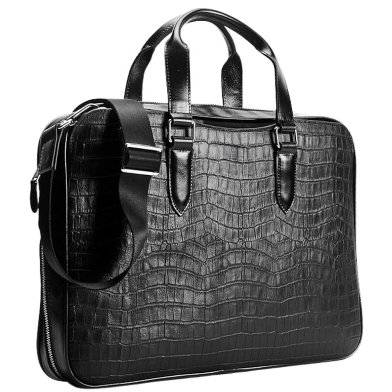 Crocodile Embossed Leather Laptop Bag: Full Grain Leather Briefcase