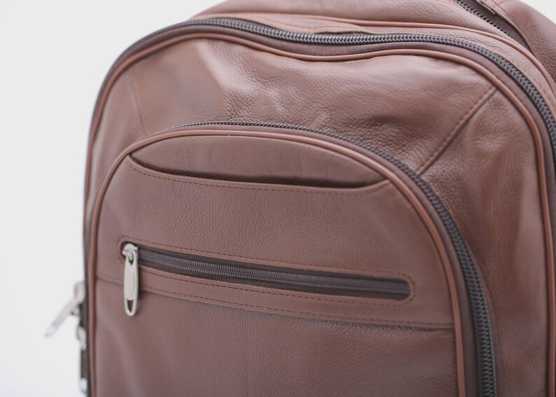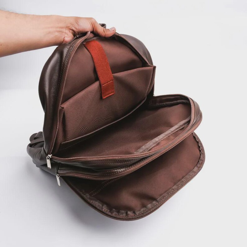 Built for everyday use, this premium leather backpack features three spacious zip compartments, giving you dedicated room for your headphones, books, files, chargers, tablet, phone, wallet, keys, water bottle, and more. Its intelligent space-saving design makes it ideal for anyone who needs to carry multiple items—while still maintaining a clean, minimalist look.