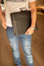 This black leather laptop bag is designed for men who value style, strength, and simplicity.
