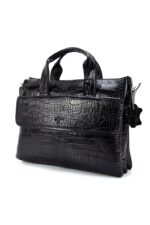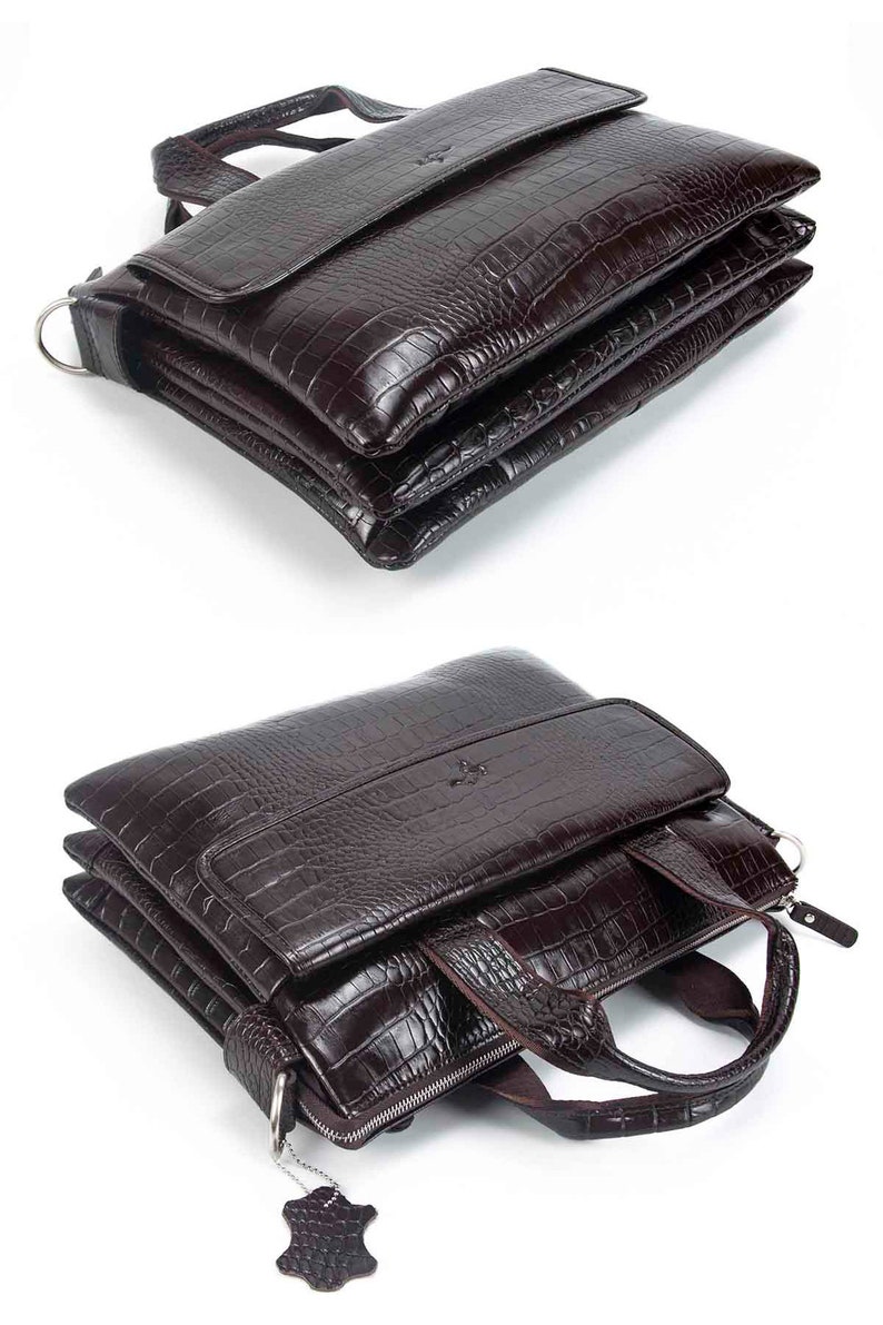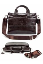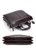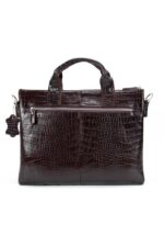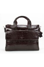 Handmade Crocodile Cow Leather Laptop Bag: Brown Leather Briefcase