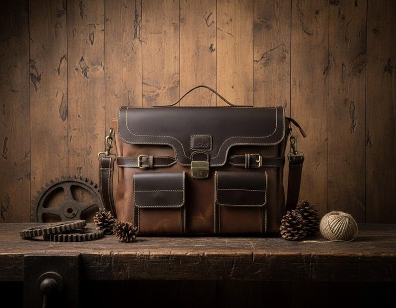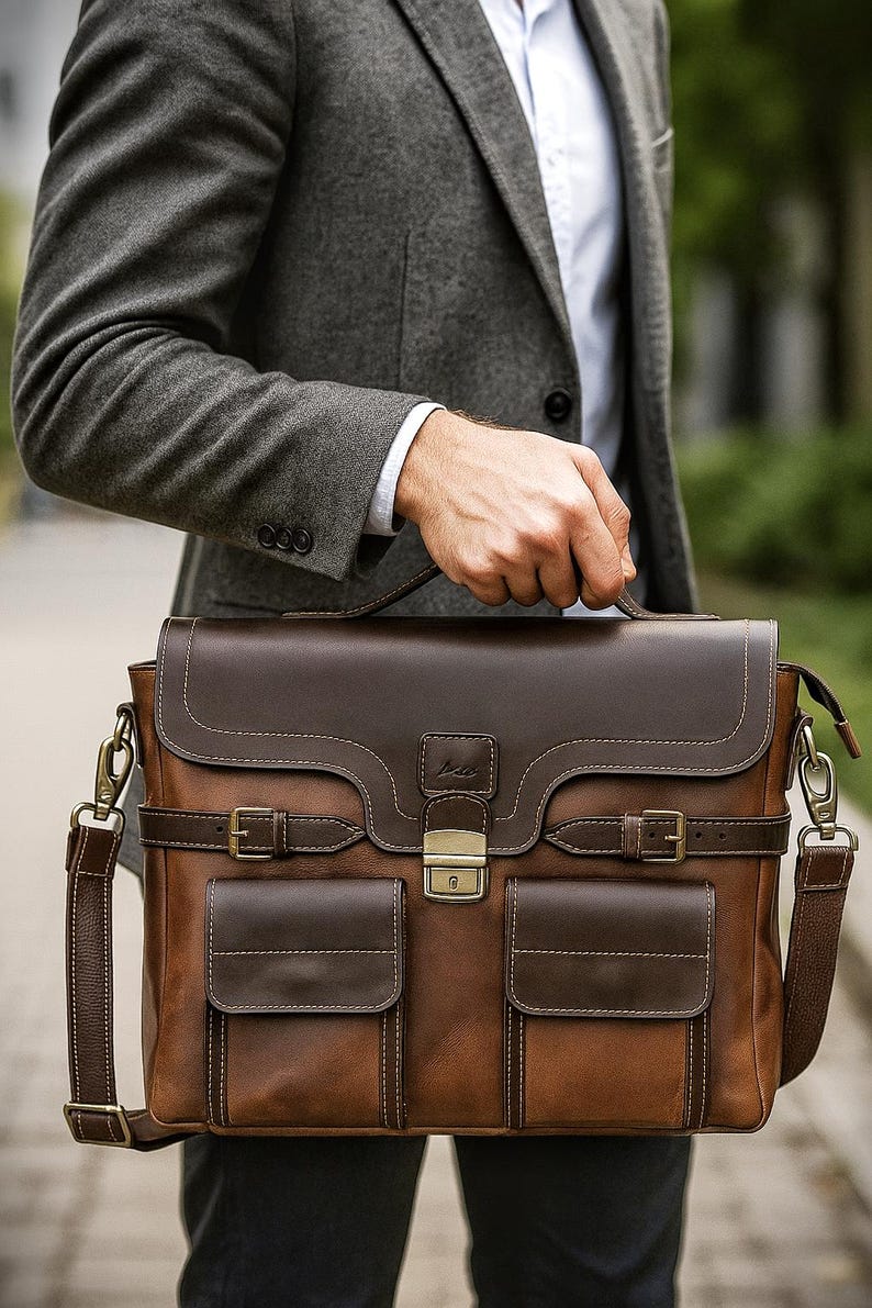 Handmade Genuine Leather Office Bag – Luxury Laptop Briefcase, Business Work Tote for Men & Women