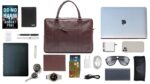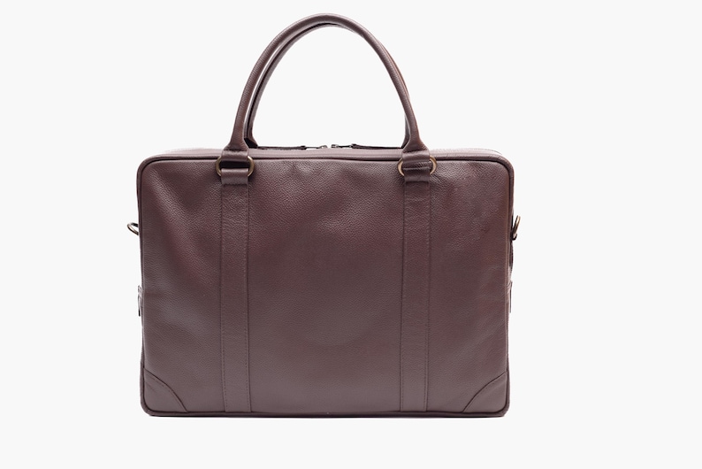 Handmade Grained Leather Laptop Bag: Granite Brown Business Office Bag