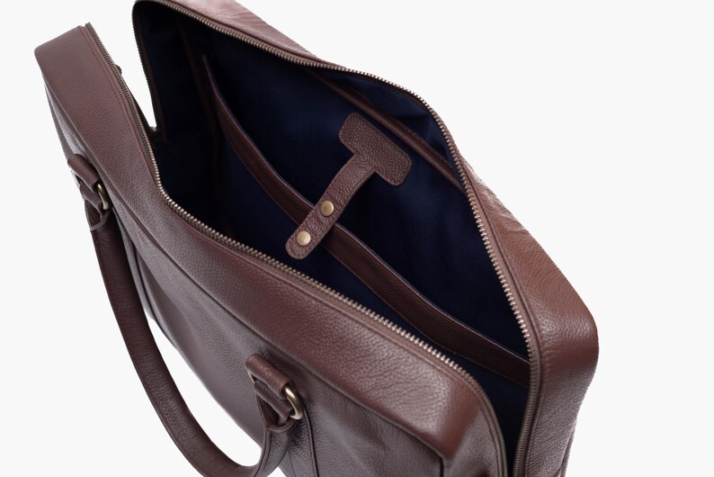 Zipped to perfection using our Hand-Polished Zippers that is not only on the outside but is placed inside for a special compartment for your literature. Our two-way zippers glide along the tracks and never fail to close even when filled to the brim. Fitted with Solid Antique Brass Hardware, it is resilient yet magnificent. Providing an accessible compartment for your laptop and is filled with pockets on the inside for your handheld items. Designed to be carried in both hand and shoulder, this piece of art is pleasant to carry and comes with an easily removable and adjustable shoulder strap.