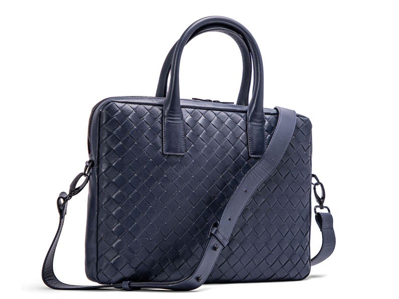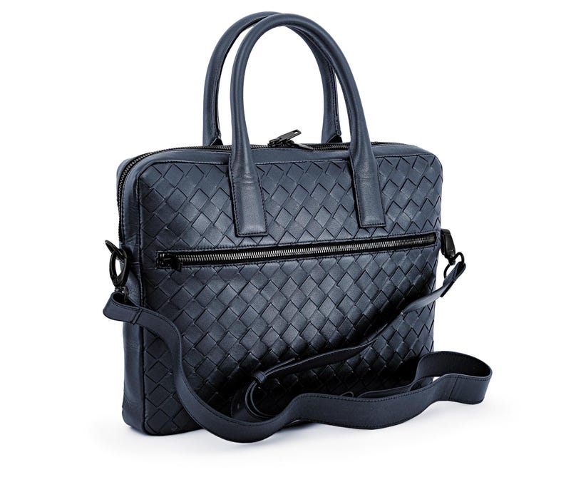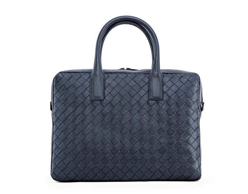 Handmade Intrecciato Leather Laptop Bag: 14-inch Woven Organizer