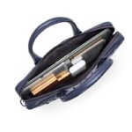 Inside, you’ll find a well-organized interior, featuring a zipper pocket for secure storage and an open pocket as well. A 13-inch or 14-inch MacBook or laptops of similar dimensions from various brands. This laptop bag seamlessly blends fashion and functionality, making it a must-have for those who appreciate both style and practicality.