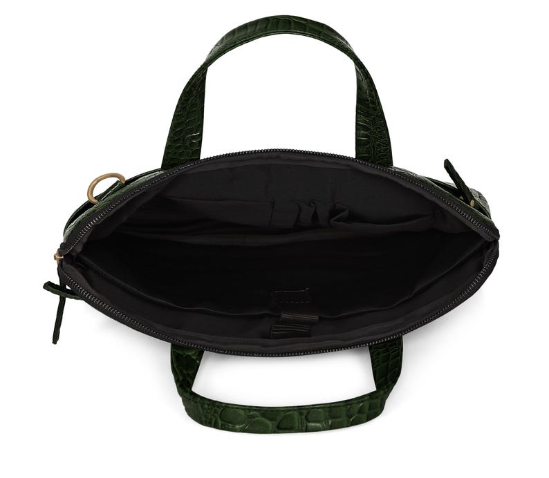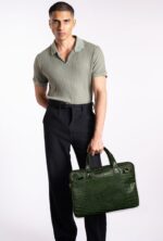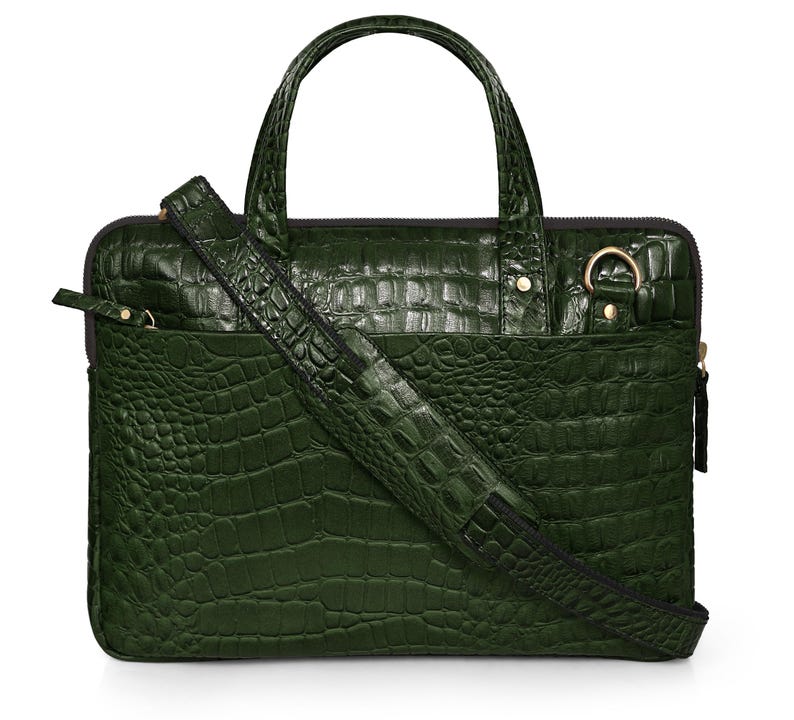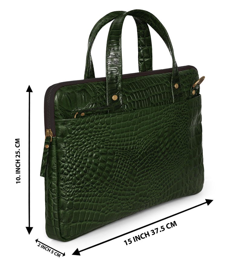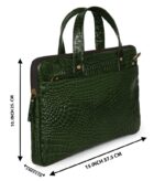 Handmade Olive Green Leather Laptop Bag: Crocodile Embossed Messenger Suitable for 14 inches
