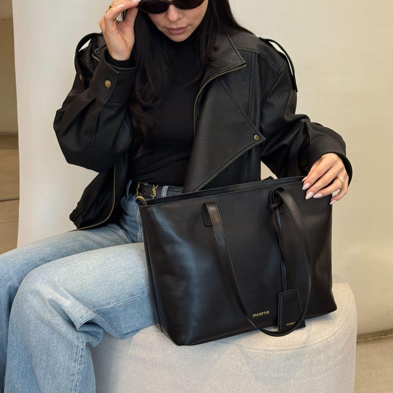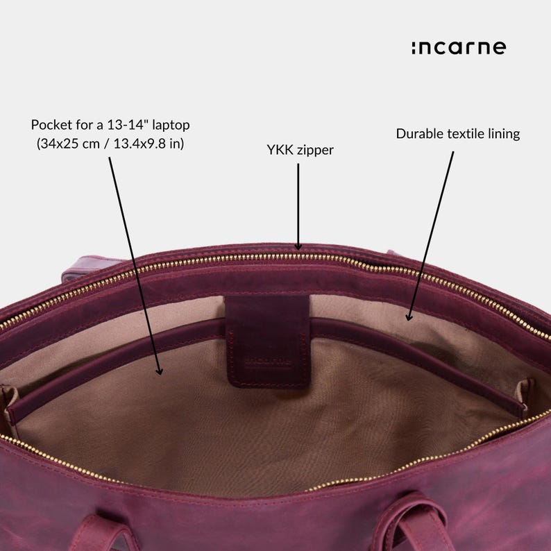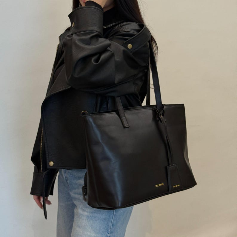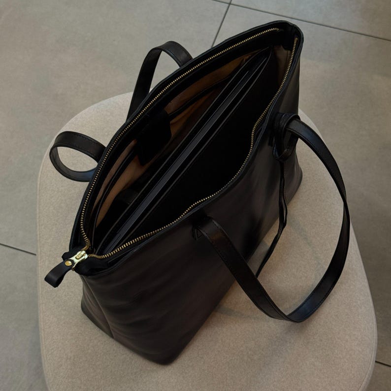Laptop Tote Bag: Durable Leather Shoulder Purse – Customizable Design, Zip and Lining