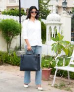 This luxury briefcase is designed to seamlessly accommodate your daily office essentials while making a statement in business meetings. Meticulously crafted by skilled leather artisans in India, it offers both durability and sophistication.