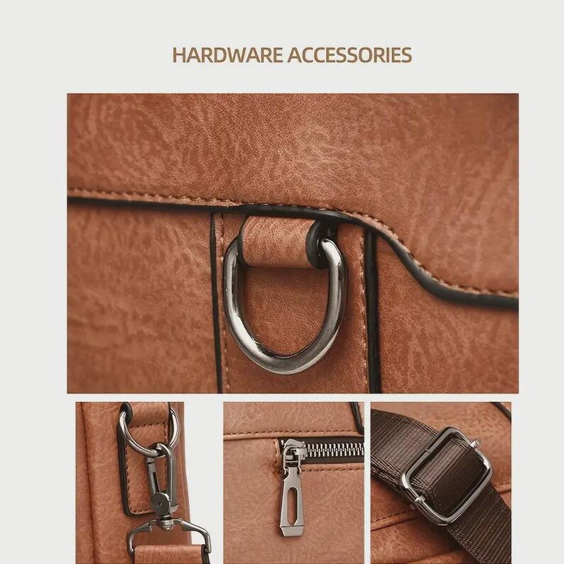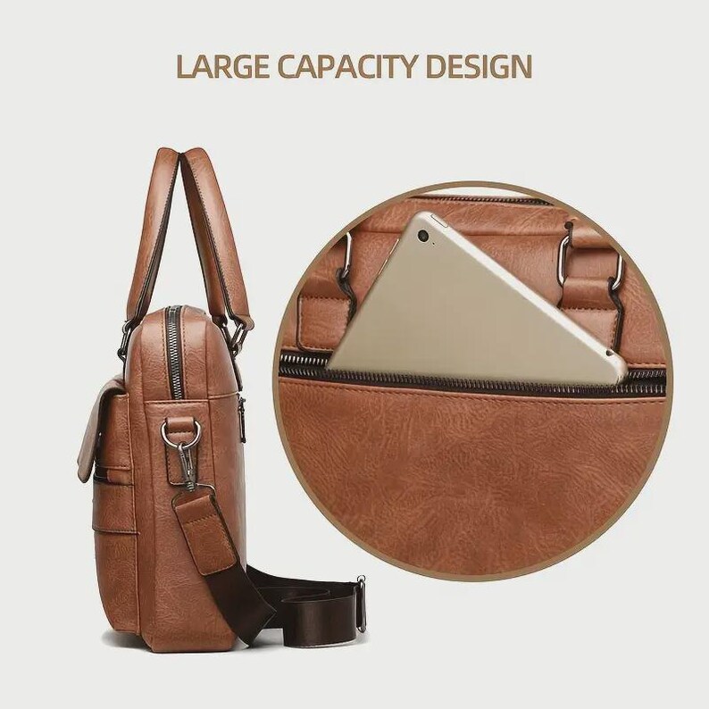 premium men’s leather laptop bag, designed for business, travel, and daily office use. Crafted with durable PU leather, this multifunctional briefcase features multiple compartments for laptops, tablets, documents, and daily essentials.