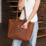 This leather work tote brings together style, organization, and practicality in one timeless design.