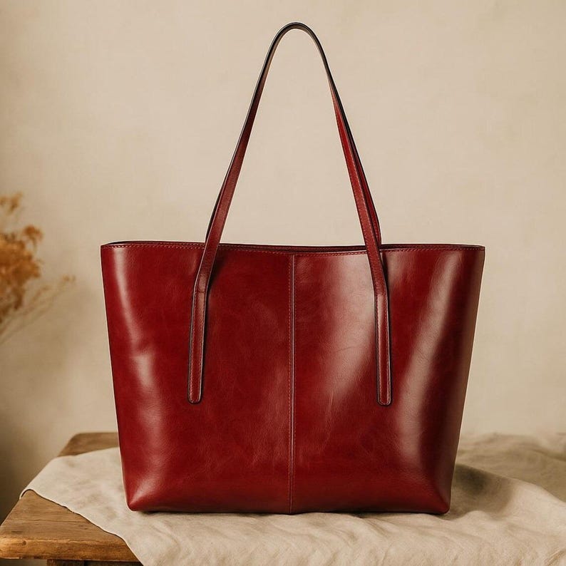 Luxury Cowhide Leather Tote Bag | French Chic Shoulder Handbag