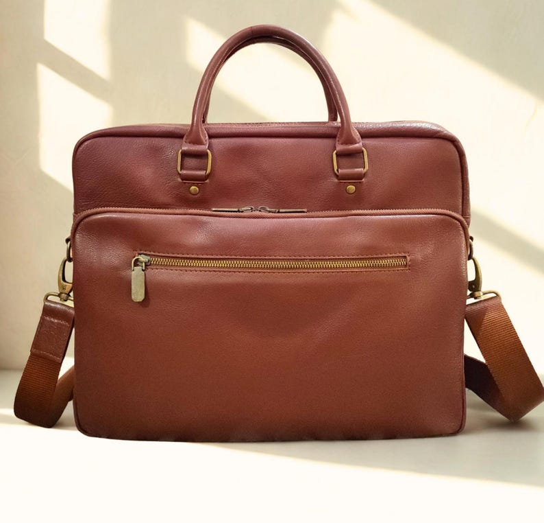 Personalized Leather Laptop Bag: MacBook Pro, iPad, Office Bookbag – US duty paid