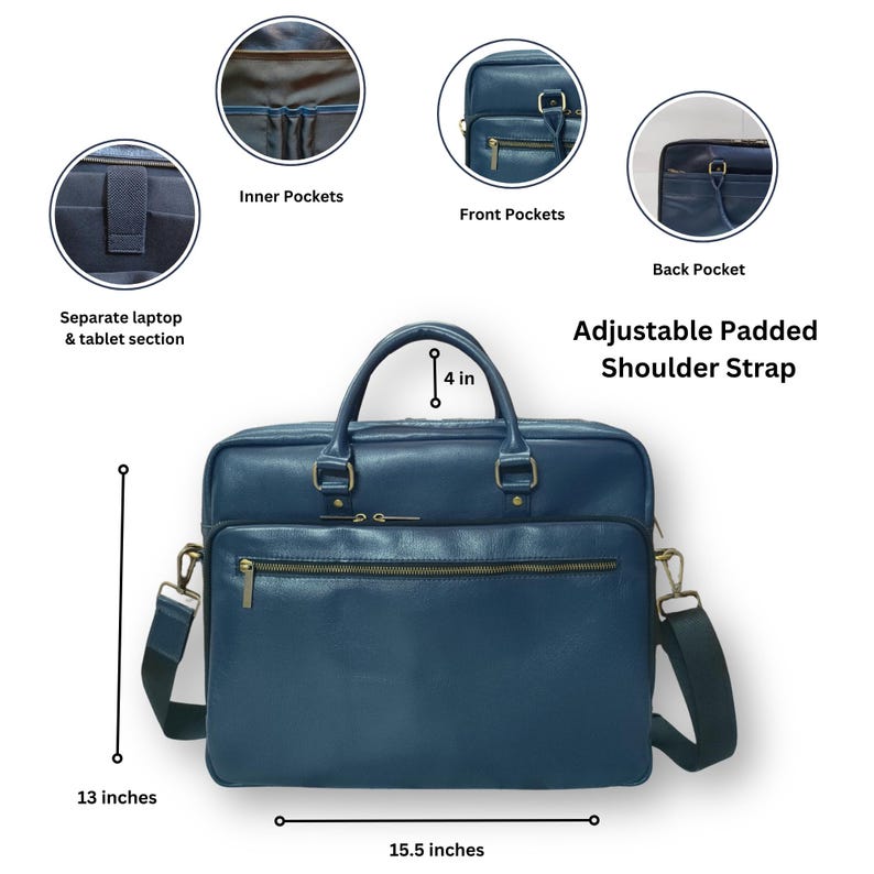 This Laptop Leather Bag is ideal for both Men & Women. Whether you need a Navy Blue Laptop Bag, a Men’s Leather Laptop Briefcase, or a Leather Travel Bag, this Handbag offers a versatile and durable solution for work, travel, office and everyday life. With dedicated storage for your laptop, tablet, books, documents, mobile, and wallet, it keeps all your essentials organized and easily accessible on the go.