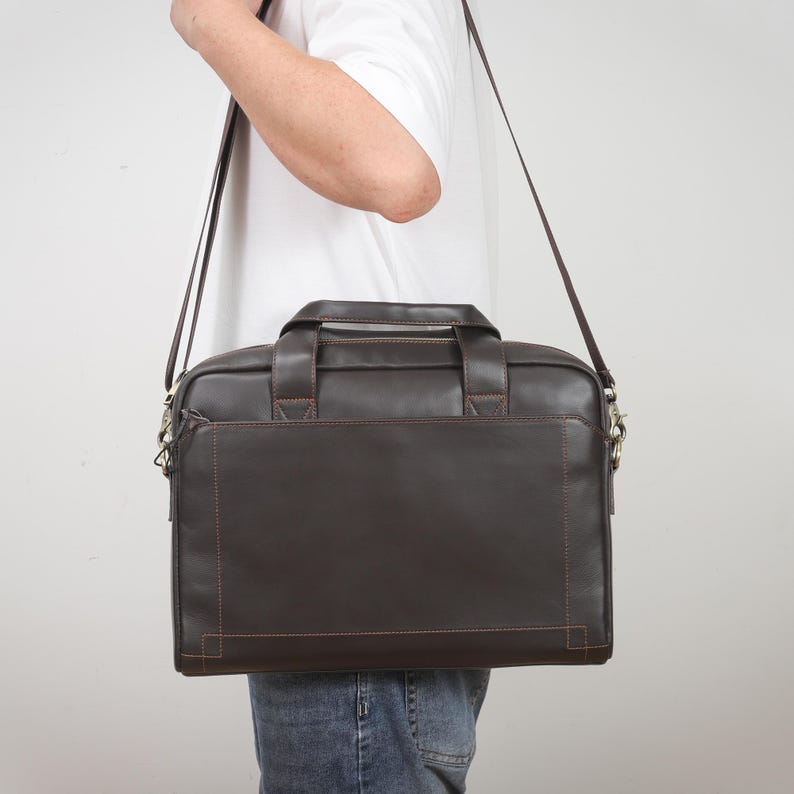 Crafted for the modern man who blends ambition with style, our Personalized Leather Laptop Briefcase is the ultimate fusion of sophisticated design, practical organization, and sentimental value. Made from premium genuine leather that develops a rich patina over time, this bag is designed not just to carry his essentials, but to carry his story.