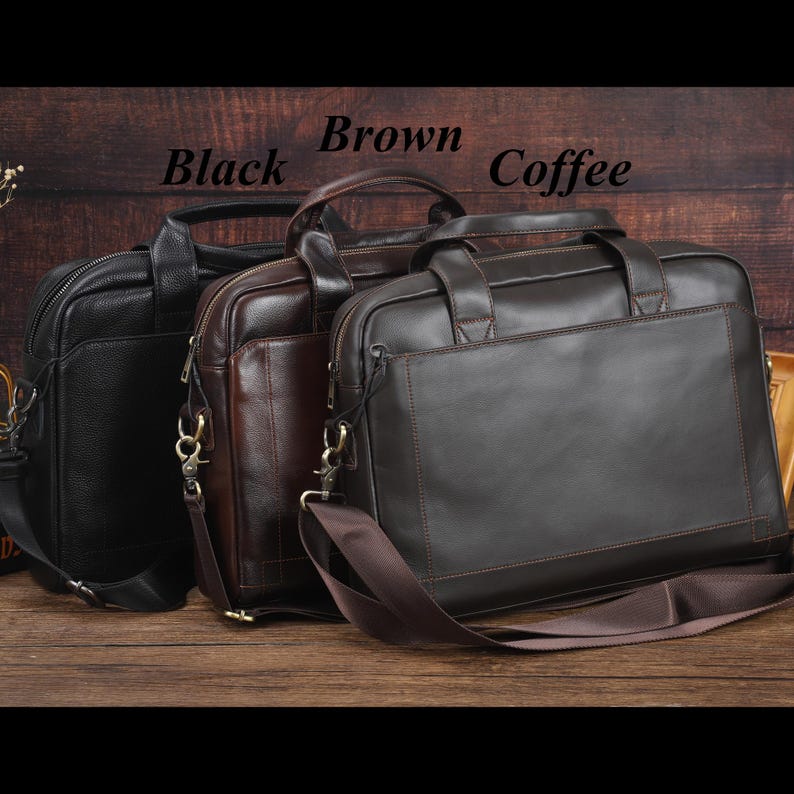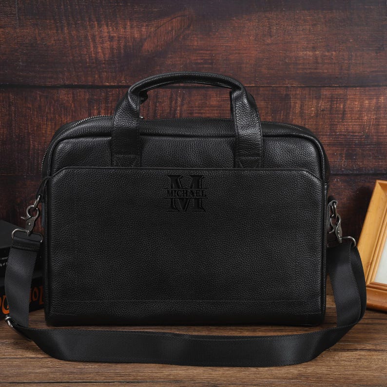Personalized Mens Leather Laptop Briefcase, Custom Engraved Leather Crossbody Messenger Bag, Gift for Businessman